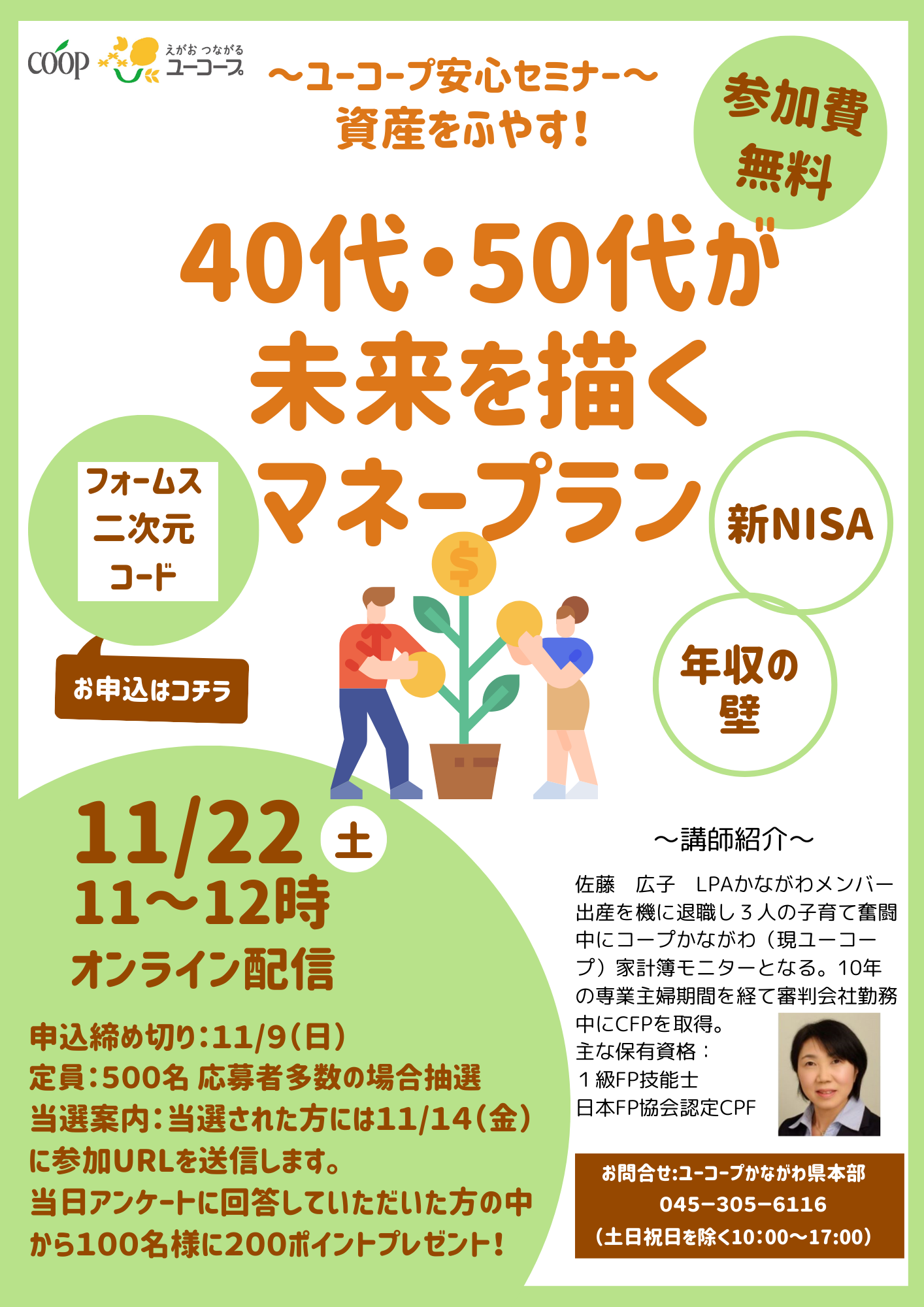 【かながわ】ユーコープ安心セミナー「資産を増やそう!40代・50代が未来を描くマネープラン」