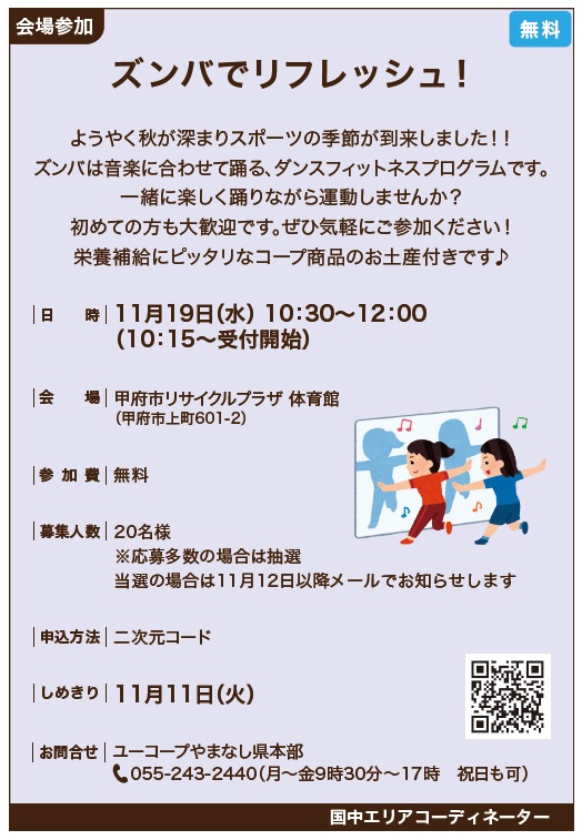 【やまなし国中エリア】ズンバでリフレッシュ!