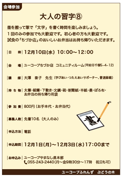 【やまなしふれんず】ぶどうの木・大人の習字⑧