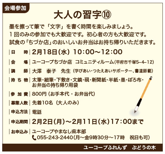 【やまなしふれんず】ぶどうの木・大人の習字⑩